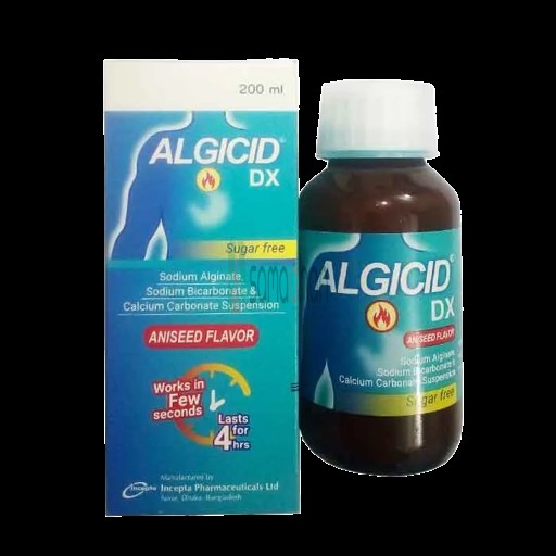 Algicid DX (500 mg+213 mg+325 mg)/10 ml Oral Suspension - Sodium Alginate + Sodium Bicarbonate + Calcium Carbonate | দাম ও ব্যবহার | অল সমাধান