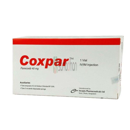 প্রাপ্তবয়স্কদের মধ্যে পোস্টোপারেটিভ ব্যথার স্বল্পমেয়াদী চিকিত্সার জন্য। একটি সিলেক্টিভ সাইক্লোক্সিজেনেস-২ (COX-2) ইনহিবিটর নির্ধারণের সিদ্ধান্তটি পৃথক রোগীর সামগ্রিক ঝুঁকির মূল্যায়নের ভিত্তিতে হওয়া উচিত।