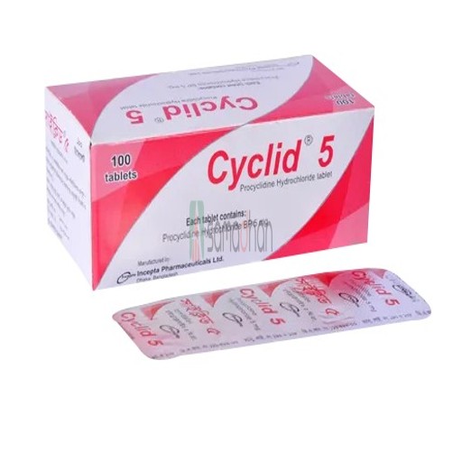 প্রোসাইক্লিডিন হাইড্রোক্লোরাইড তুলনামূলকভাবে কম বিষাক্ততার একটি অ্যান্টিমাসকারিনিক অ্যান্টিপার্কিনসোনিয়ান এজেন্ট। এটি একটি সিন্থেটিক টারশিয়ারি অ্যামাইন। এই ওষুধটি আপেক্ষিক কোলিনার্জিক অতিরিক্ত সংশোধন করে তাদের অ্যান্টিপারকিনসোনিয়ান প্রভাব প্রয়োগ করে যা ডোপামিনের অভাবের ফলে পারকিনসোনিয়াতে ঘটে বলে মনে করা হয়। এটি G.I থেকে শোষিত হয়। ট্র্যাক্ট এবং টিস্যু থেকে দ্রুত অদৃশ্য হয়ে যায়। শিরায় প্রশাসনের পরে, এটি 5 থেকে 20 মিনিটের মধ্যে কাজ করে এবং 4 ঘন্টা পর্যন্ত প্রভাবের সময়কাল থাকে।