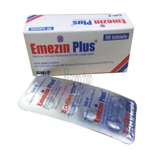 মেক্লিজিন একটি পাইপারাজিন-ডেরিভেটিভ অ্যান্টিহিস্টামিন যা অ্যান্টিমেটিক হিসাবে ব্যবহৃত হয়। এটিতে অ্যান্টিমেটিক, অ্যান্টিকোলিনার্জিক এবং অ্যান্টিহিস্টামিনিক বৈশিষ্ট্য রয়েছে। এটি গোলকধাঁধা যন্ত্রের সংবেদনশীলতা হ্রাস করে। ক্রিয়াটি কেমোরেসেপ্টর ট্রিগার জোন (CTZ), পেরিফেরাল নার্ভ পাথওয়ে, ভিসি বা অন্যান্য সিএনএস কেন্দ্র থেকে বমি কেন্দ্রে (ভিসি) স্নায়ু পথের মাধ্যমে মধ্যস্থতা করা যেতে পারে। পাইরিডক্সিন হল ভিটামিন বি -6। এটি অ্যান্টি-এমেটিক প্রভাবগুলিকে উন্নত করতে এবং একটি খাদ্যতালিকাগত সম্পূরক হিসাবে যুক্ত করা হয়েছে।