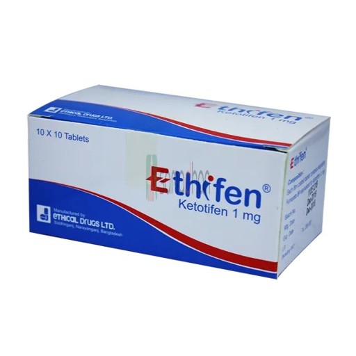 কেটোটিফেনের অ্যান্টি-অ্যালার্জিক বৈশিষ্ট্য রয়েছে এবং হাঁপানির রোগ প্রতিরোধী চিকিত্সায় সোডিয়াম ক্রোমোগ্লাইকেটের জন্য একইভাবে ব্যবহার করা হয়েছে। এটিতে অ্যান্টিহিস্টামিনের বৈশিষ্ট্যও রয়েছে। কেটোটিফেন চিহ্নিত অ্যান্টি-অ্যানাফিল্যাকটিক বৈশিষ্ট্যের অধিকারী এবং এটি হাঁপানির আক্রমণ প্রতিরোধে কার্যকর। কেটোটিফেন হিস্টামাইন বিক্রিয়ায় টেকসই প্রতিষেধক প্রভাব হিসাবে প্রয়োগ করে, যা এর অ্যান্টি-অ্যানাফিল্যাকটিক বৈশিষ্ট্য থেকে স্পষ্টভাবে বিচ্ছিন্ন হতে পারে। হাঁপানির বিষয়ে পরীক্ষামূলক তদন্তে দেখা গেছে যে কেটোটিফেন মৌখিকভাবে শ্বাস নেওয়ার মাধ্যমে পরিচালিত একটি নির্বাচনী মাস্ট সেল স্টেবিলাইজারের মতো কার্যকর। এন্টিহি স্ট্যামাইন সেই পরীক্ষায় অকার্যকর ছিল। কেটোটিফেনের কার্যকারিতা দীর্ঘমেয়াদী ক্লিনিকাল ট্রায়ালগুলিতে অধ্যয়ন করা হয়েছে। হাঁপানির আক্রমণ সংখ্যা, তীব্রতা এবং সময়কাল হ্রাস করা হয়েছিল এবং কিছু ক্ষেত্রে রোগীরা আক্রমণ থেকে সম্পূর্ণ মুক্ত হয়েছিল। কর্টিকোস্টেরয়েড এবং/অথবা ব্রঙ্কোডাইলেটরগুলির প্রগতিশীল হ্রাসও সম্ভব ছিল। কেটোটিফেনের প্রফিল্যাকটিক কার্যকলাপ সম্পূর্ণরূপে প্রতিষ্ঠিত হতে কয়েক সপ্তাহ সময় লাগতে পারে। কেটোটিফেন হাঁপানির প্রতিষ্ঠিত আক্রমণ বাতিল করবে না।